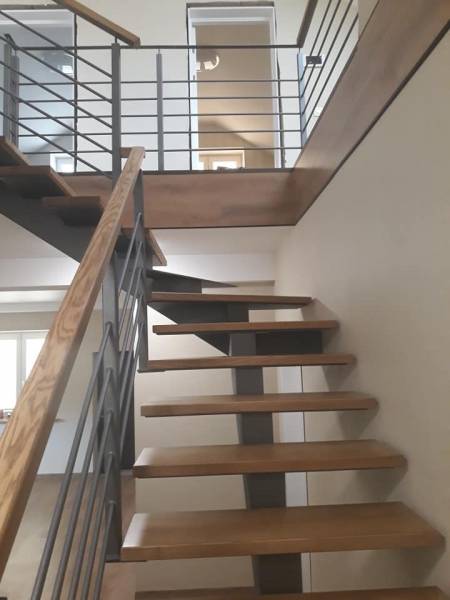 Лестницы любой конфигурации (маршевые, на одном косоуре, на двух косоурах, винтовые, лофт, кованые) под ключ - от проекта, изготовления, грунтовки покраски до установки и монтажа. Изготовление производится на производственных мощностях предприятия, собирается полностью, монтаж на территории заказчика выполняется за пол дня.